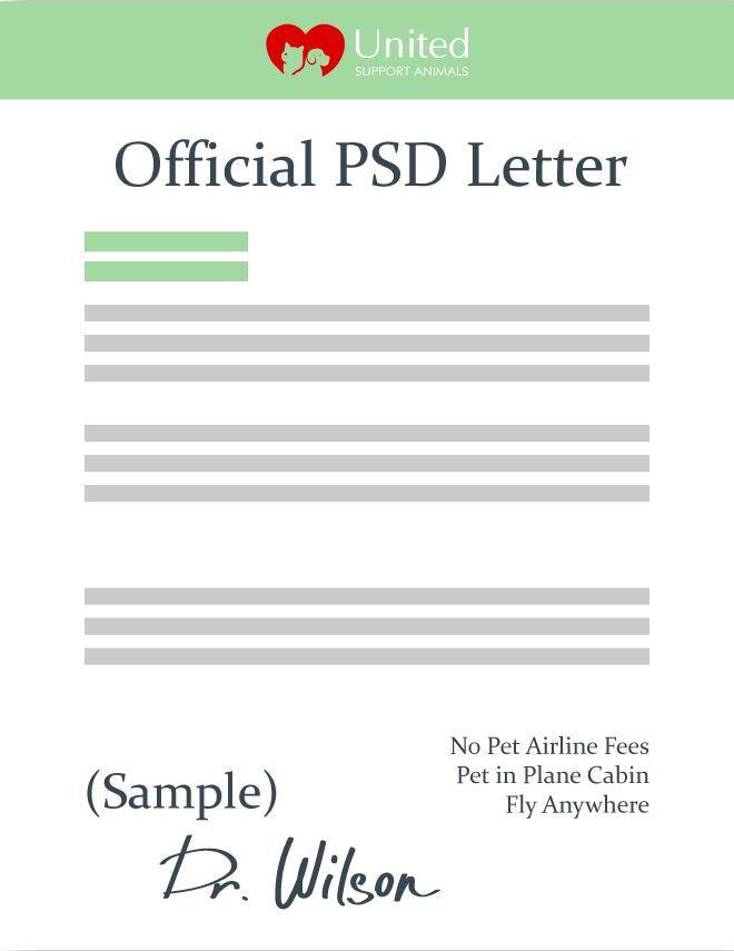 A PSD (Psychiatric Service Dog) letter is documentation from a licensed mental health professional confirming your need for a trained psychiatric service dog. It grants you legal rights to have your dog accompany you in public places and on airlines.
